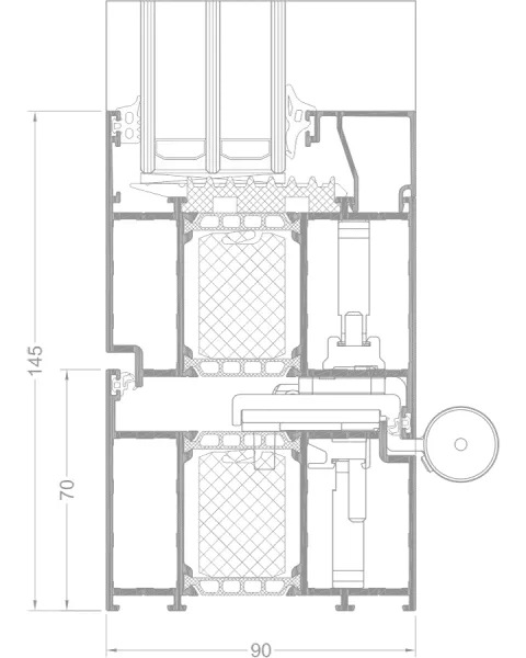 Nowoczesny system aluminiowy do projektowania okien i drzwi wymagających bardzo dobrej izolacji termicznej. Separator termiczny o głębokości 45 mm, wykonany z solidnych i sprawdzonych materiałów, stanowi skuteczną barierę termiczną. Ten sam typ wkładki izolacyjnej w skrzydle okna i w ościeżnicy zapewnia stałą ochronę przed stratami ciepła całej konstrukcji.