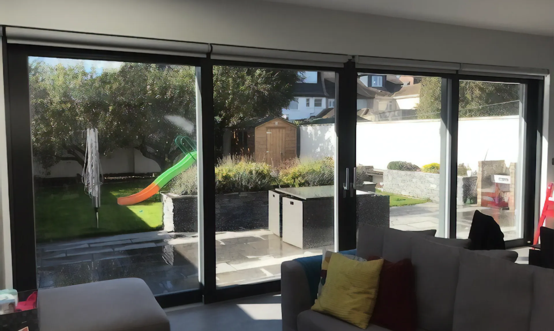 Drzwi przesuwne HST są idealnym rozwiązaniem dla tych, którzy pragną komfortowego połączenia wnętrza i tarasu oraz panoramicznego widoku osiągniętego dzięki dużej powierzchni przeszklonej. Specjalne mechanizmy okuć pozwalają na przesuwanie ogromnych skrzydeł przy użyciu minimalnej siły. Obracając klamkę w dół, z pozycji zamkniętej, podnosimy skrzydło o kilka milimetrów, uwalniając nacisk uszczelek i umożliwiając swobodne przesuwanie skrzydeł.