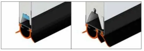 The shape of the upper arch has been designed in such a way to optimally press the upper panel of the door to the lintel. The warm door VENTE K2 RFS 60 is made of thicker panels and is equipped with double sealing of the bottom panel, intersectional panels and additional perimeter sealing which levels the thermal bridges between the walls and the angle iron.