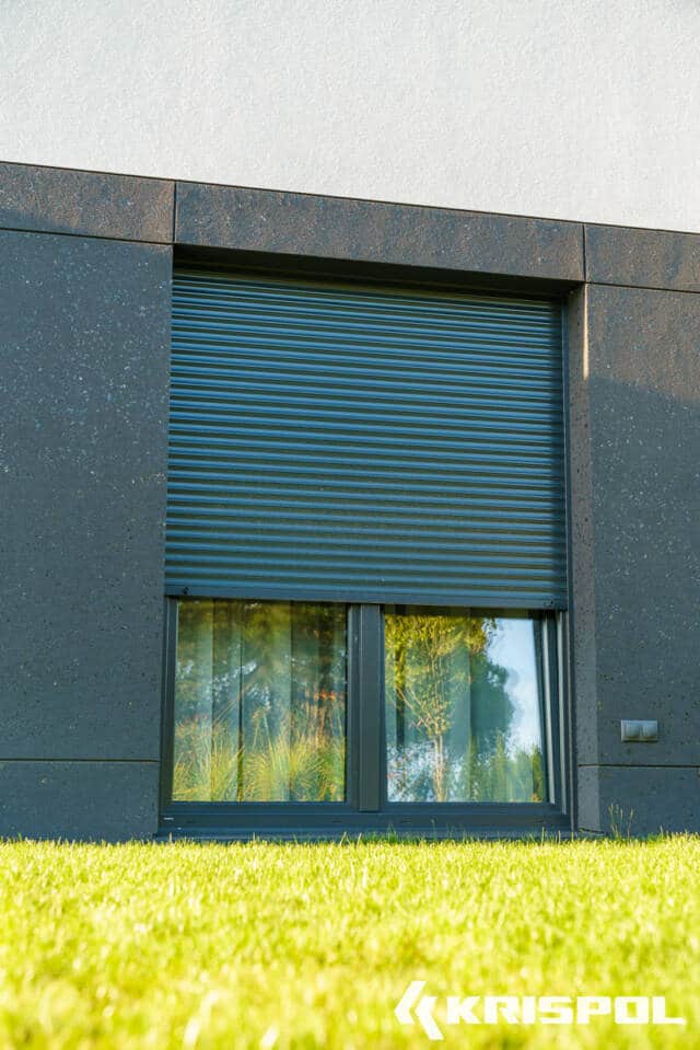 Wenn das Haus bereits fertig ist und die Fenster nicht ersetzt werden müssen, ist die beste Lösung der Einbau von Fassadenläden. Sie werden oberhalb der Fensternische an der Wand montiert. Diese Installationsmethode erfordert keine vorherige Planung bei der Gebäudeplanung, und die Rollläden können an alle Fenstertypen angepasst werden. Der Rollladenkasten kann in einer von über 200 RAL-Farben lackiert oder furniert (KALIMA RS) werden, wodurch er zu einem ästhetischen Element des Hauses wird.