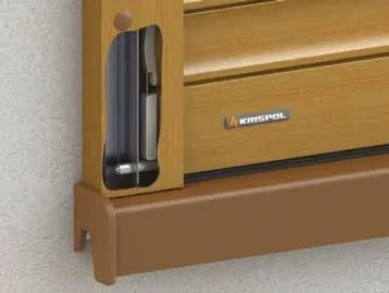 Rollläden mit manuellem Antrieb können mit zwei Arten von Sicherheitsmechanismen ausgestattet sein. Der erste ist der am häufigsten verwendete und erfordert keine zusätzliche Wartung – es handelt sich um einen automatischen Riegel. Wie der Name schon sagt, verriegeln beim Schließen des Rollladens Stahlbolzen, die sich in der unteren Lamelle befinden, automatisch in den