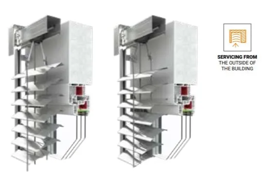 – dank des veränderlichen Winkels der Lamellen. Darüber hinaus schützen sie auch vor lästigem Lärm. Diese Lösung ist für moderne Konstruktionen mit großflächiger Verglasung konzipiert. Sie erfüllt ihre Funktionen,