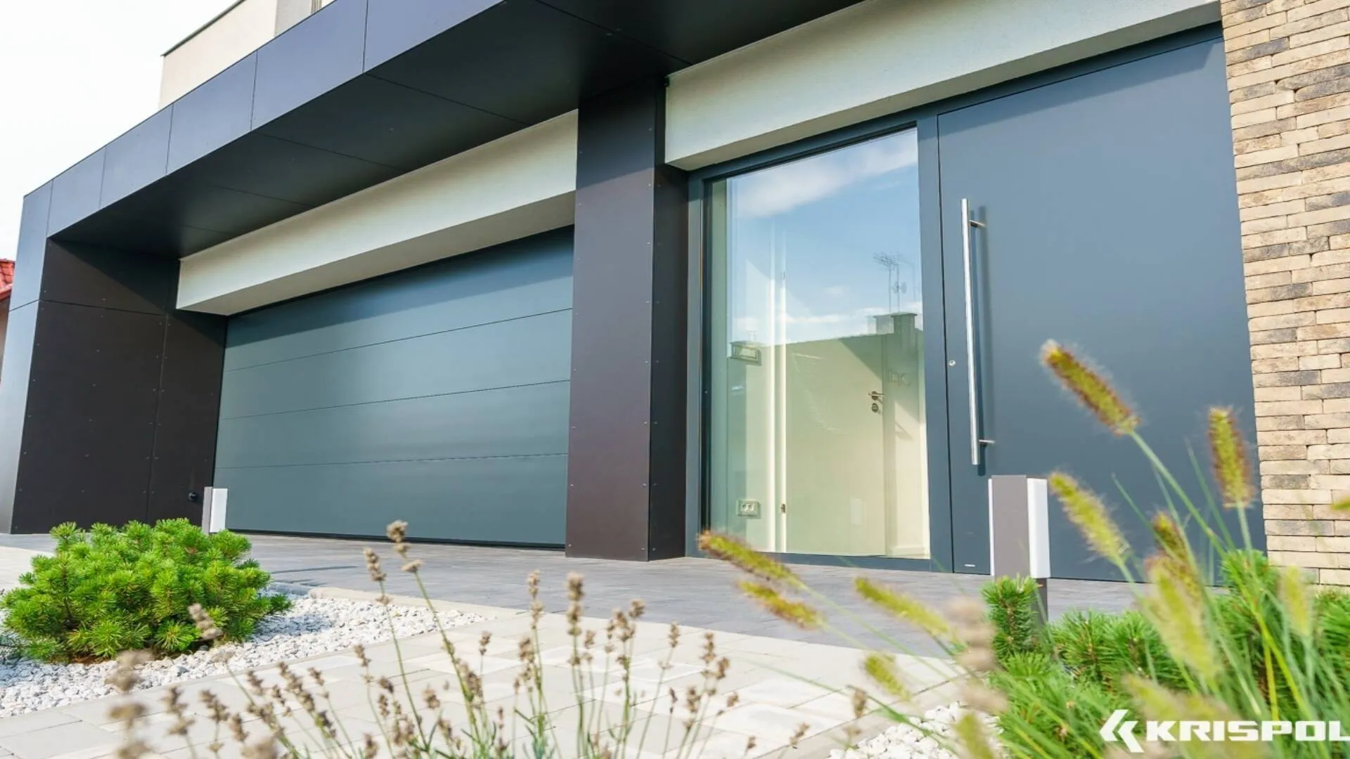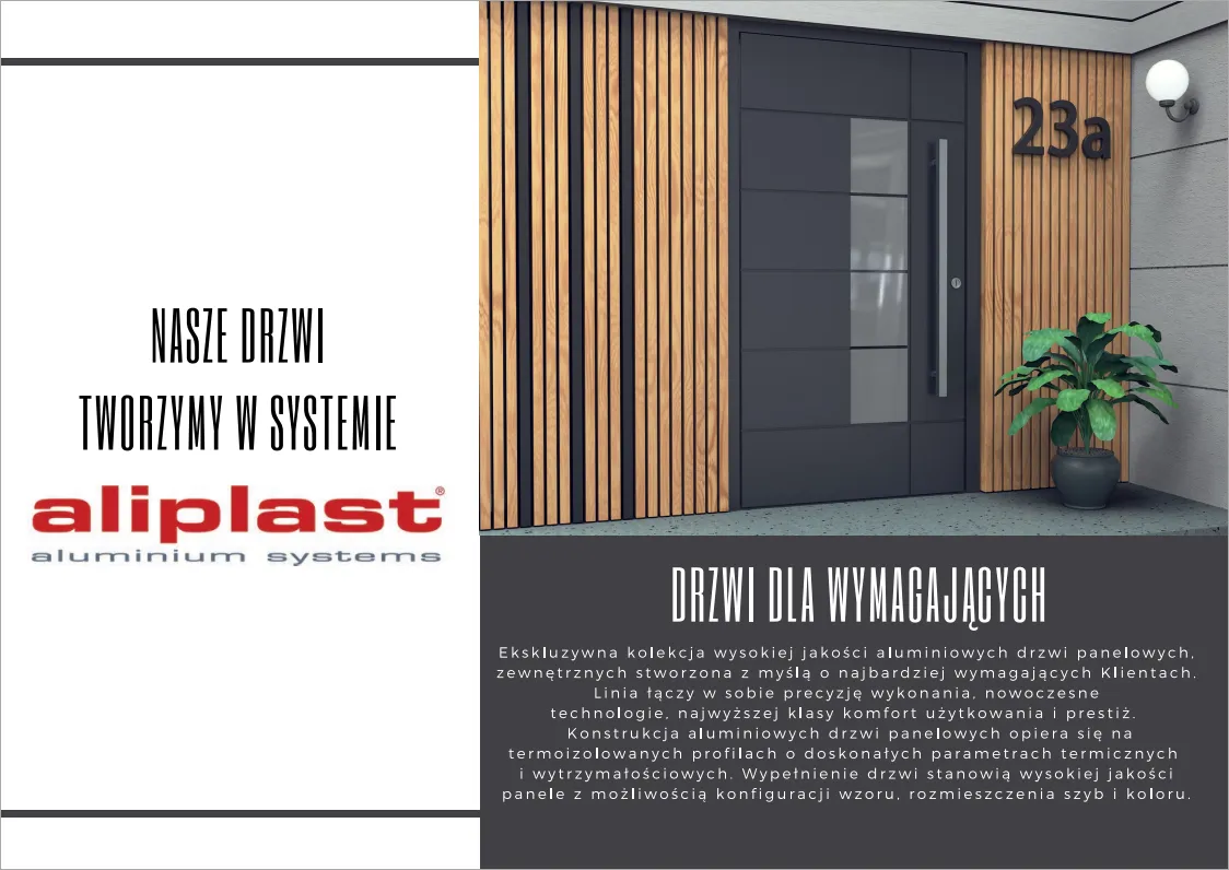 Das SOLANO-Aluminiumtorsystem basiert auf Sektionen, die in einer Tiefe von 90 mm montiert sind. Die Füllung des Systems besteht aus Paneelen aus Aluminiumblechen, die mit einer sehr dicken Schicht isolierenden Polyurethanschaums gefüllt sind. Die Paneele überlagern sich auf beiden Seiten des Tores, so dass eine optisch ansprechende Oberfläche entsteht, die mit dem Rahmen übereinstimmt. Die Designer der Türen haben sich auf jedes konstruktive Detail konzentriert, um einen Wärmedurchgangskoeffizienten von 0,8 W [m2K] zu erreichen.