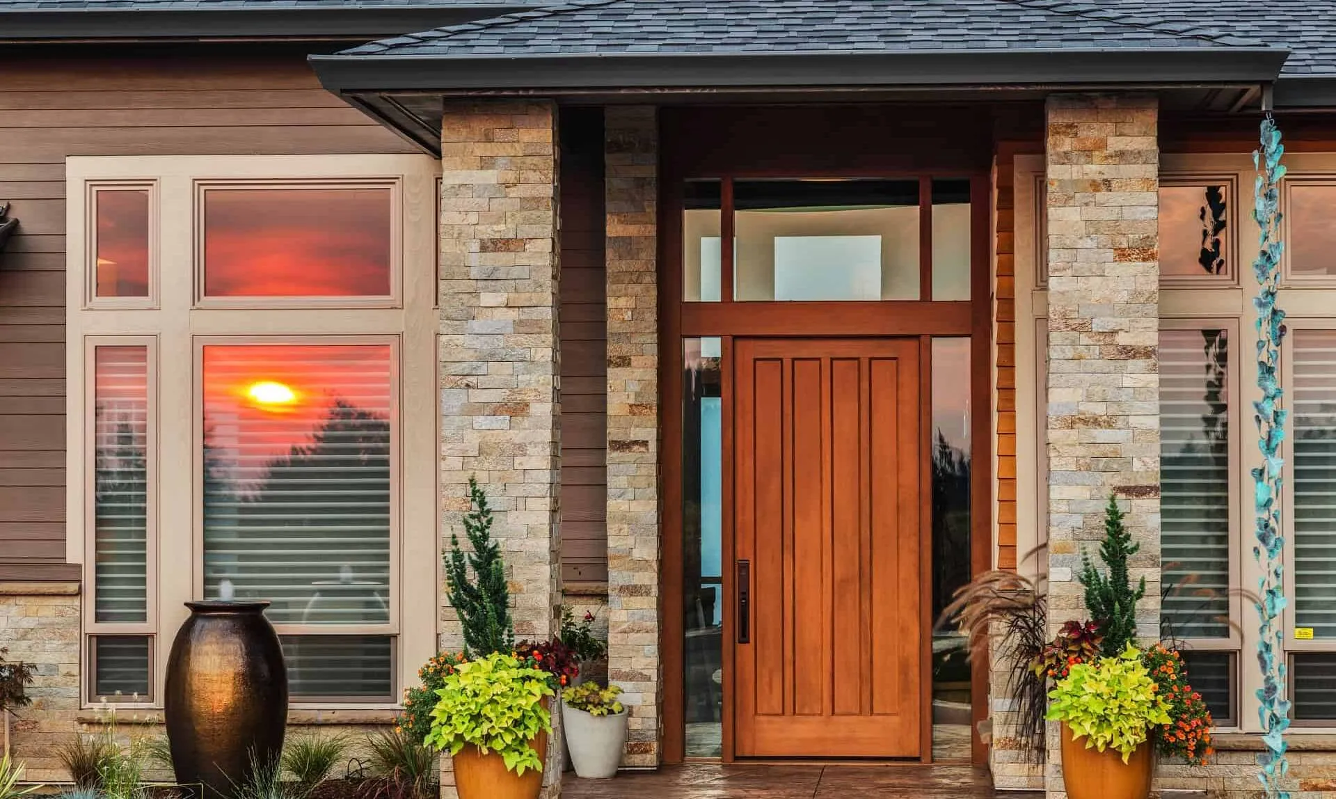 Drewniane drzwi wejściowe tworzą wizerunek nowoczesnego i stylowego domu. Charakteryzują się funkcjonalnością i stabilnością, która wynika z zastosowania naturalnych materiałów, które jednocześnie są wodoodporne.